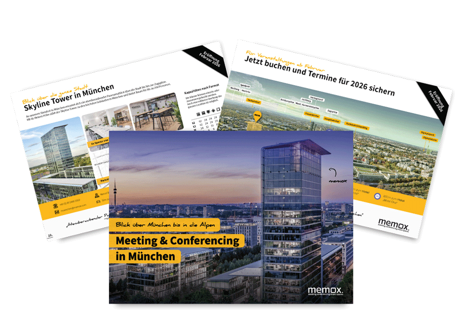 An unserem Standort in München erwartet dich ab Februar 2026 ein atemberaubender Ausblick - über ganz München bis hin zu den Alpen. Mit 85 Metern Höhe zählt der Skyline Tower zu den höchsten Gebäuden in München und bietet Raum für Veranstaltungen mit bis zu 200 Personen. Die lichtdurchfluteten, modern ausgestatteten Räume bieten das perfekte Ambiente für produktive Meetings, fokussierte Seminare, kreative Workshops und mehr.